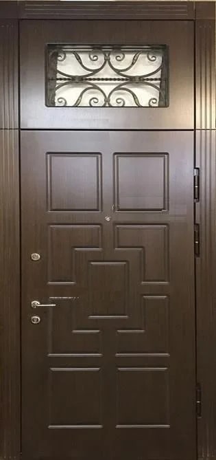 Эта входная дверь с решеткой и фрамугой №2 — практичный и надежный выбор для тех, кто ищет баланс между безопасностью и эстетикой. Ее конструкция выполнена из профильной трубы 50х25 мм и металла толщиной 2 мм, что гарантирует прочность и долговечность. Внешняя отделка из МДФ придает двери современный вид и защищает от внешних воздействий, таких как царапины и вмятины. Фрамуга добавляет свет в помещение, а решетка обеспечивает дополнительную безопасность. Резиновый уплотнитель с двумя контурами эффективно защищает от холода и пыли, а блокираторы обеспечивают надежную защиту от несанкционированного доступа. Эта модель может быть дополнена стеклопакетом, зеркалом или коваными элементами для улучшения внешнего вида, а также оборудована видеодомофоном для дополнительного удобства. Входная дверь с решеткой и фрамугой №2 от производителя: быстрое изготовление и монтаж в Апрелевке, индивидуальные размеры, широкий выбор материалов и фурнитуры, официальная гарантия до 10 лет.