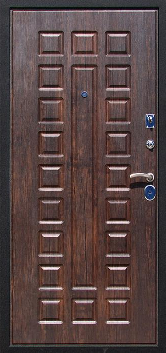 Входная дверь в квартиру ширина стандарт №41 создана как универсальное решение для городских квартир, частных домов и офисных помещений. Конструкция на основе профильной трубы и листа стали толщиной 2 мм обеспечивает прочность и устойчивость к взлому, а рёбра жёсткости добавляют дополнительную надёжность. С обеих сторон дверь облицована плитами МДФ, которые придают поверхности аккуратный внешний вид и защищают её от мелких повреждений. Такой вариант отделки отличается практичностью: панели устойчивы к влаге, сохраняют форму и цвет, даже если дверь эксплуатируется ежедневно. Два контура резиновых уплотнителей не дают проникнуть сквознякам и уличному шуму, а терморазрыв в коробке и полотне препятствует промерзанию в холодное время года. Благодаря стандартной ширине установка не требует сложных подготовительных работ, а при необходимости дверь может быть изготовлена в индивидуальном размере. Входная дверь в квартиру ширина стандарт №41 от производителя: быстрое изготовление и монтаж в Апрелевке, индивидуальные размеры, широкий выбор материалов и фурнитуры, официальная гарантия до 10 лет.