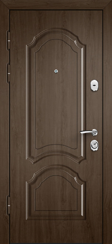 Элегантный ореховый оттенок всегда ассоциируется с надёжностью и уютом, а в сочетании с металлической основой он приобретает ещё и солидный характер. Панели МДФ с ПВХ-покрытием не только придают двери выразительный внешний вид, но и защищают её от случайных царапин, сохраняя поверхность безупречной на долгие годы. Дверь МДФ в частный дом цвета орех №531 создаёт гармоничный акцент на фасаде коттеджа или органично вписывается в интерьер квартиры и офиса. Каркас из профильной трубы и стальной лист толщиной 2 мм образуют прочную основу, усиленную рёбрами жёсткости. Для безопасности предусмотрены два замка российского производства: сувальдный Просам и цилиндровый Мосрентген, оба с надёжной системой ригелей. Дополнительно конструкцию можно разнообразить зеркалом, стеклопакетом или коваными элементами, подчеркнув индивидуальность дома и вкус его владельца. Дверь МДФ в частный дом цвета орех №531 от производителя: быстрое изготовление и монтаж в Апрелевке, индивидуальные размеры, широкий выбор материалов и фурнитуры, официальная гарантия до 10 лет.