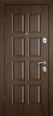 Надёжность и строгая функциональность – вот что олицетворяет входная дверь в квартиру стал №77. Её прочная основа выполнена из профильной трубы и стального листа толщиной 2 мм с дополнительными рёбрами жёсткости, что делает конструкцию устойчивой к нагрузкам и долговечной. Внутри и снаружи использованы накладки МДФ, практичный материал, который сохраняет аккуратный вид, не боится случайных царапин и хорошо подходит для помещений любого типа. Два замка — сувальдный Просам и цилиндровый Мосрентген — обеспечивают многоуровневую защиту, а при желании их можно заменить на более современные или даже умные электронные механизмы. Дверь комплектуется двумя контурами резинового уплотнителя, которые препятствуют проникновению сквозняков и уличного шума, а при необходимости конструкция легко дополняется шумо- и теплоизоляцией. Такой вариант одинаково уместен в квартире, частном доме или офисе, где ценят баланс безопасности и практичности. Входная дверь в квартиру стал №77 от производителя: быстрое изготовление и монтаж в Апрелевке, индивидуальные размеры, широкий выбор материалов и фурнитуры, официальная гарантия до 10 лет.