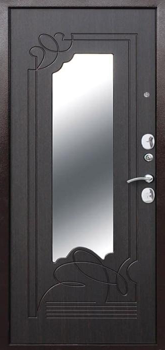 Дверь оснащена надежной конструкцией, включая металлический каркас из профильной трубы 50х25 мм и металлический лист толщиной 2 мм, что гарантирует долговечность и защиту от внешних воздействий. Внутри двери установлена плита минваты или пенопласт для шумоизоляции, а уплотнители с двумя контурами предотвращают проникновение звуков и сквозняков. Замки с тремя ригелями (сувальдный и цилиндровый) обеспечивают высокий уровень безопасности. Дополнительно можно установить зеркала, стеклопакеты или кованые элементы для придания индивидуальности.