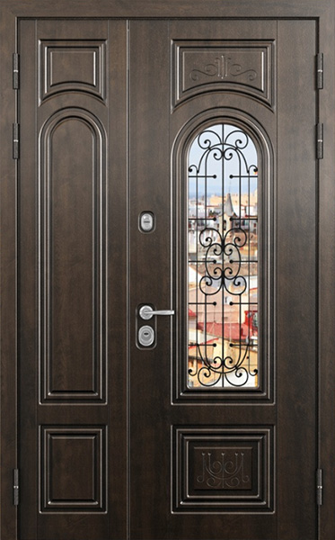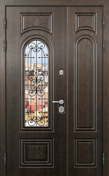 Двупольная стальная дверь со стеклопакетом и кованым узором №24 станет отличным выбором для тех, кто ценит не только безопасность, но и стиль. Внешняя и внутренняя отделка выполнены из МДФ, что придает двери элегантный и современный вид, а также обеспечивает высокую устойчивость к механическим повреждениям и износу. Стеклопакет и кованые элементы добавляют изысканности и уникальности, при этом сохраняя прочность конструкции. Двупольная стальная дверь со стеклопакетом и кованым узором №24 от производителя: быстрое изготовление и монтаж в Апрелевке, индивидуальные размеры, широкий выбор материалов и фурнитуры, официальная гарантия до 10 лет.