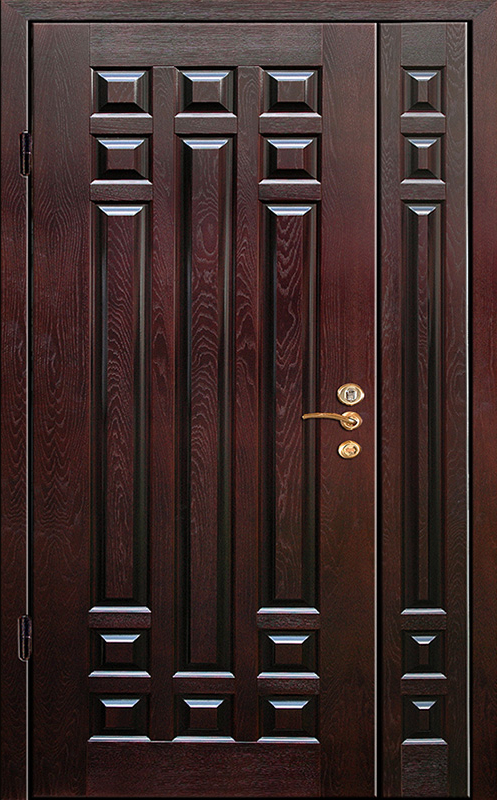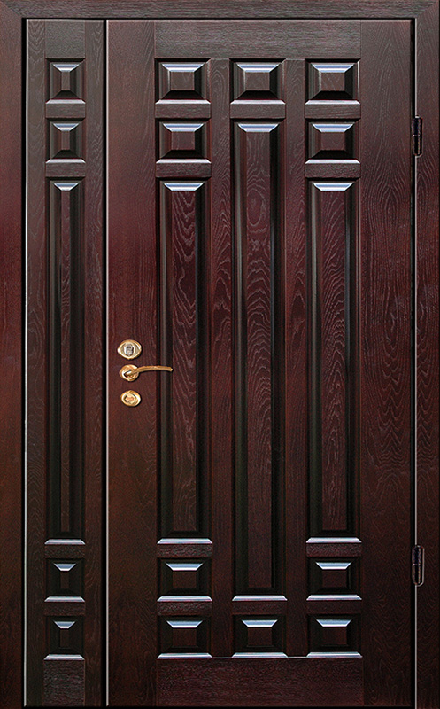 Эта двухстворчатая парадная дверь с объемной фрезеровкой №3 станет отличным акцентом в любом интерьере, добавив элегантности и солидности. Внешняя и внутренняя отделка из натурального дерева придает двери натуральный и стильный вид, который легко впишется как в классические, так и современные дизайны. Прочная конструкция двери с каркасом из профильной трубы 50х25 мм и листом металла толщиной 2 мм гарантирует долговечность и защиту. Ребра жесткости из профильных труб 40х25 мм повышают ее устойчивость к нагрузкам. Замки "Просам" и "Мосрентген" с тремя ригелями обеспечивают надежную защиту. Возможность выбора отделки и установки дополнительных элементов, таких как зеркало, стеклопакет или кованые детали, позволяет сделать дверь уникальной и подходящей под любые требования. Терморазрыв полотна и коробки способствует улучшению теплоизоляции. Вдобавок можно оснастить дверь современными замками и видеодомофоном для дополнительного комфорта и безопасности. Парадная двухстворчатая дверь с объемной фрезеровкой №3 от производителя: быстрое изготовление и монтаж в Апрелевке, индивидуальные размеры, широкий выбор материалов и фурнитуры, официальная гарантия до 10 лет.