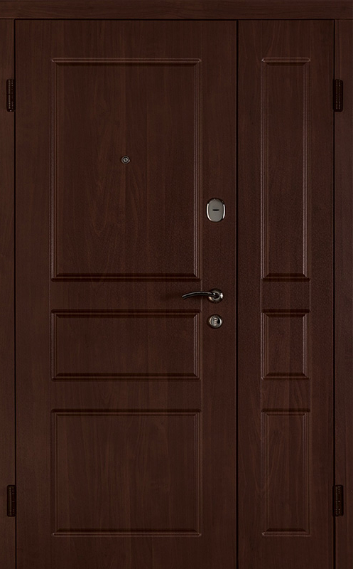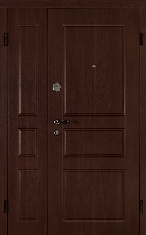 Коричневая входная полуторная дверь с филенчатой створкой №4 – это надежное и стильное решение для вашего дома или офиса. Внешняя и внутренняя отделка из МДФ с ПВХ обеспечивает долговечность и устойчивость к повреждениям, сохраняя при этом элегантный внешний вид. Прочные материалы конструкции, такие как профильная труба 50х25 мм и лист металла толщиной 2 мм, гарантируют стабильность и безопасность. Ребра жесткости из профильных труб 40х25 мм усиливают дверное полотно, а уплотнение с двумя контурами надежно защищает от внешних факторов. Несмотря на отсутствие терморазрыва, в двери реализованы терморазрывы в коробке и полотне, что помогает улучшить теплоизоляцию. Возможность выбора дополнительных опций, таких как шумоизоляция, делает эту дверь универсальной для различных условий эксплуатации. Коричневая входная полуторная дверь с филенчатой створкой №4 от производителя: быстрое изготовление и монтаж в Апрелевке, индивидуальные размеры, широкий выбор материалов и фурнитуры, официальная гарантия до 10 лет.