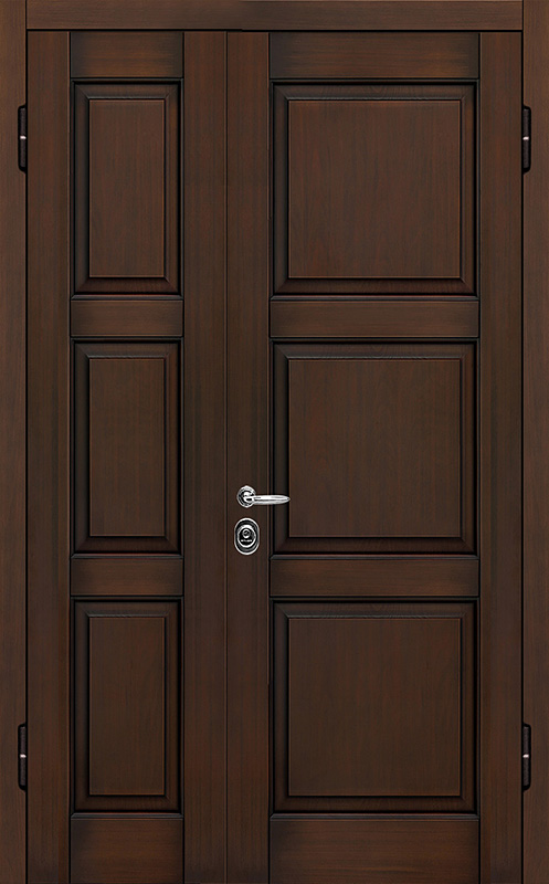 Двойная филенчатая дверь для загородного дома венге №7 сочетает в себе элегантность и прочность. Ее внешняя отделка выполнена из панелей МДФ с ПВХ, что придает двери современный вид, а также обеспечивает устойчивость к механическим повреждениям и долговечность. Каркас из профильной трубы 50х25 мм и полотно толщиной 2 мм гарантируют надежность и устойчивость к нагрузкам. Ребра жесткости из профильных труб 40х25 мм усиливают конструкцию, а уплотнение с двумя контурами защищает от проникновения влаги и пыли. Замки "Просам" и "Мосрентген" с тремя ригелями обеспечивают высокий уровень безопасности. В дверь можно добавить дополнительные элементы, такие как стеклопакет, зеркало или кованые детали, что позволяет адаптировать ее под любой интерьер. Терморазрывы в коробке и полотне способствуют лучшей теплоизоляции, обеспечивая комфорт в любое время года. Двойная филенчатая дверь для загородного дома венге №7 от производителя: быстрое изготовление и монтаж в Апрелевке, индивидуальные размеры, широкий выбор материалов и фурнитуры, официальная гарантия до 10 лет.