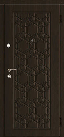Офисная дверь с фрезеровкой плитка №6 сочетает в себе стиль и надежность, подходя как для офисных помещений, так и для частных домов и квартир. Внешняя отделка с порошковым напылением защищает дверь от внешних повреждений и обеспечивает долговечность, сохраняя привлекательный внешний вид даже при активном использовании. Внутреннее покрытие из МДФ добавляет теплоту и современность, делая дверь идеальной для разных интерьеров. Конструкция из профильной трубы 50х25 мм и металл толщиной 2 мм гарантируют прочность и стойкость к механическим повреждениям, а ребра жесткости из трубы 40х25 мм усиливают ее надежность. Замки и блокираторы обеспечивают дополнительную безопасность, а двухконтурный резиновый уплотнитель помогает сохранить тепло и защитить от лишнего шума. Эта модель легко адаптируется под любые требования, добавив элементы, такие как стеклопакеты, зеркала или кованые украшения. Офисная дверь с фрезеровкой плитка №6 от производителя: быстрое изготовление и монтаж в Апрелевке, индивидуальные размеры, широкий выбор материалов и фурнитуры, официальная гарантия до 10 лет.