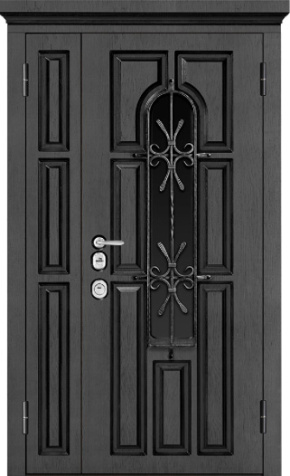 Морозостойкая дверь в широкий проем с глухим полотном стеклом и ковкой №30