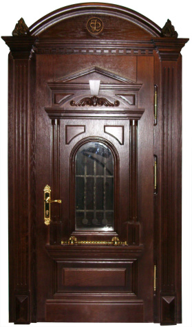 Входная металлическая дверь для частного дома со стеклом и ковкой №29